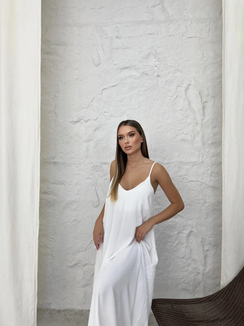 Aerobin markasının şık tasarımıyla öne çıkan uzun elbise saks beyaz rengiyle göz kamaştırıyor. Hem zarif hem de rahat kesimiyle günün her saati şıklık ve konfor sunuyor.