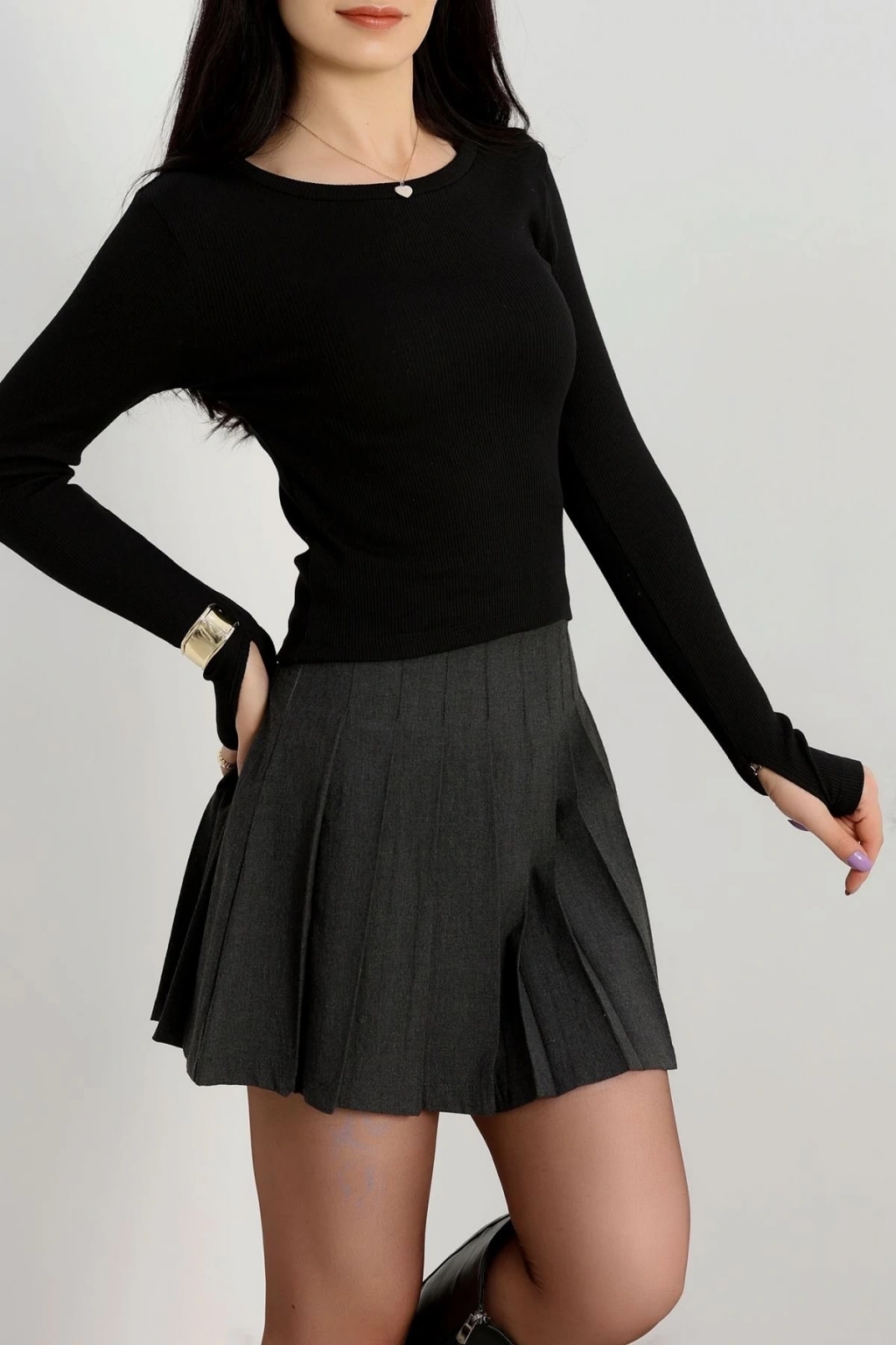 Bisiklet Yaka Parmak Geçmeli Kaşkorse bluz siyah a3829, kadın giyim kategorisinde şıklık ve rahatlığı bir arada sunan bir üründür.