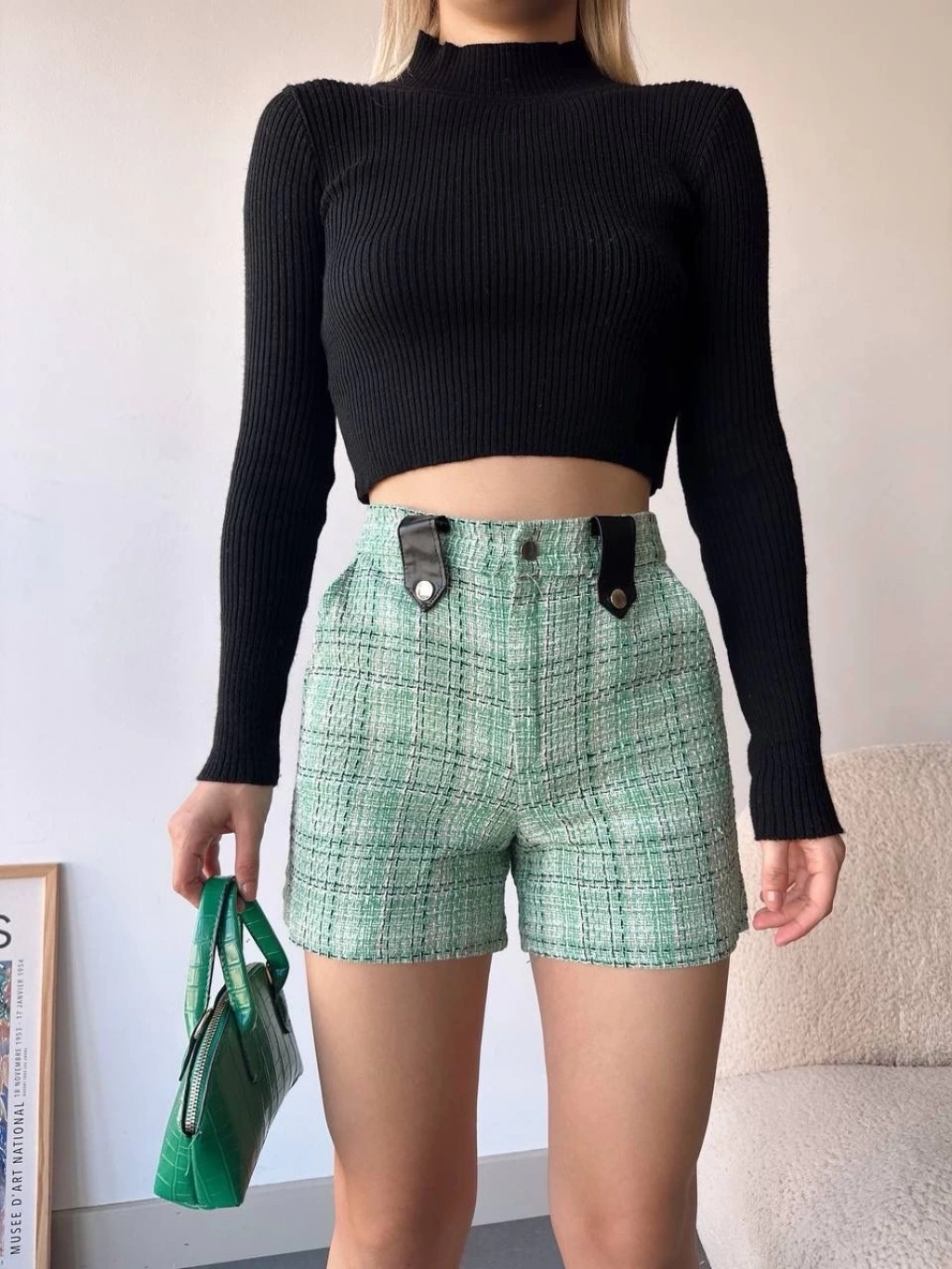 Çıtçıtlı siyah köprü şanel şortu, şıklığı ve rahatlığı bir arada sunar. Hem günlük kullanıma hem de özel günlerde tercih edebileceğiniz şort, gardırobunuzun vazgeçilmez parçalarından biri olmaya aday.