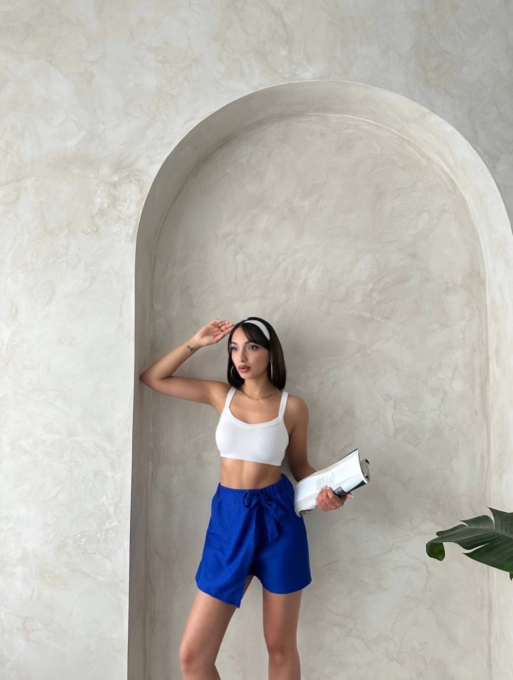 Yaz aylarının vazgeçilmezi şort etek modellerinden biri olan Fiyonklu Şort Etek Saks S255021, şıklık ve rahatlığı bir arada sunuyor.
