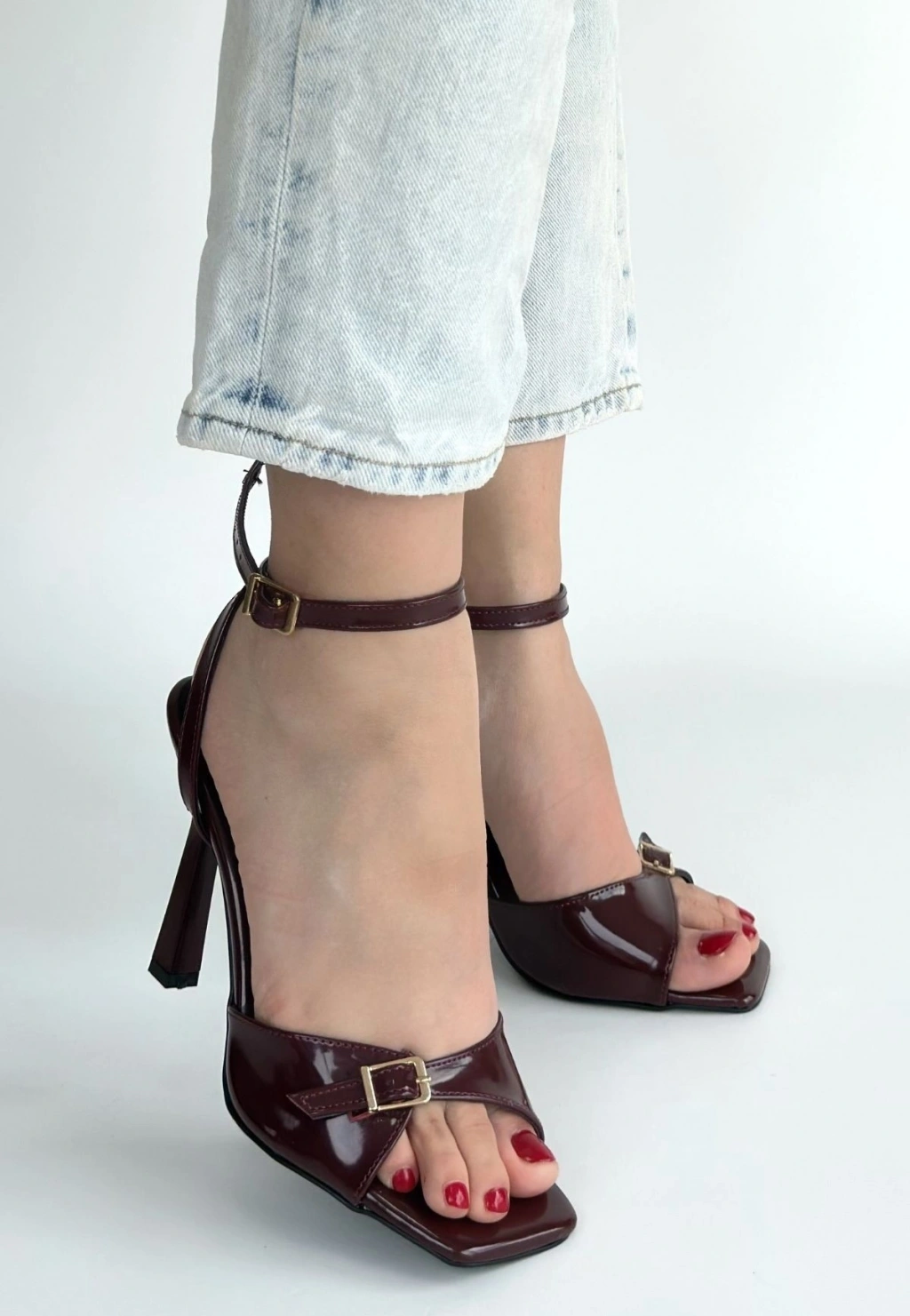 Hoste Bordo Rugan Topuklu Bilekten Kemerli Ayakkabı