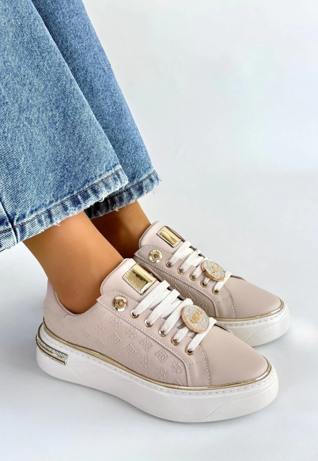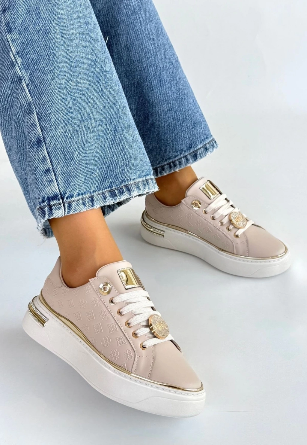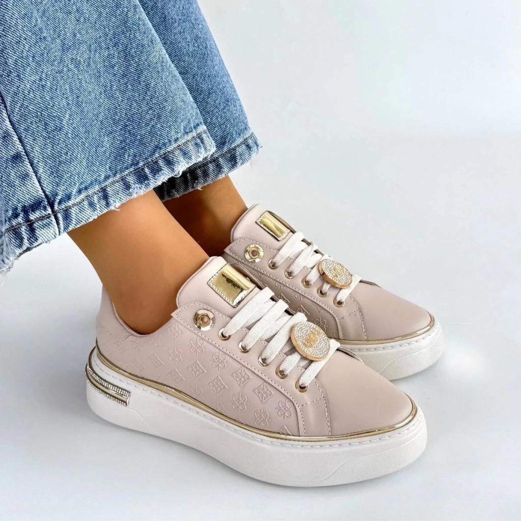 • Jlar Bej Cilt Bağcıklı Spor Ayakkabı