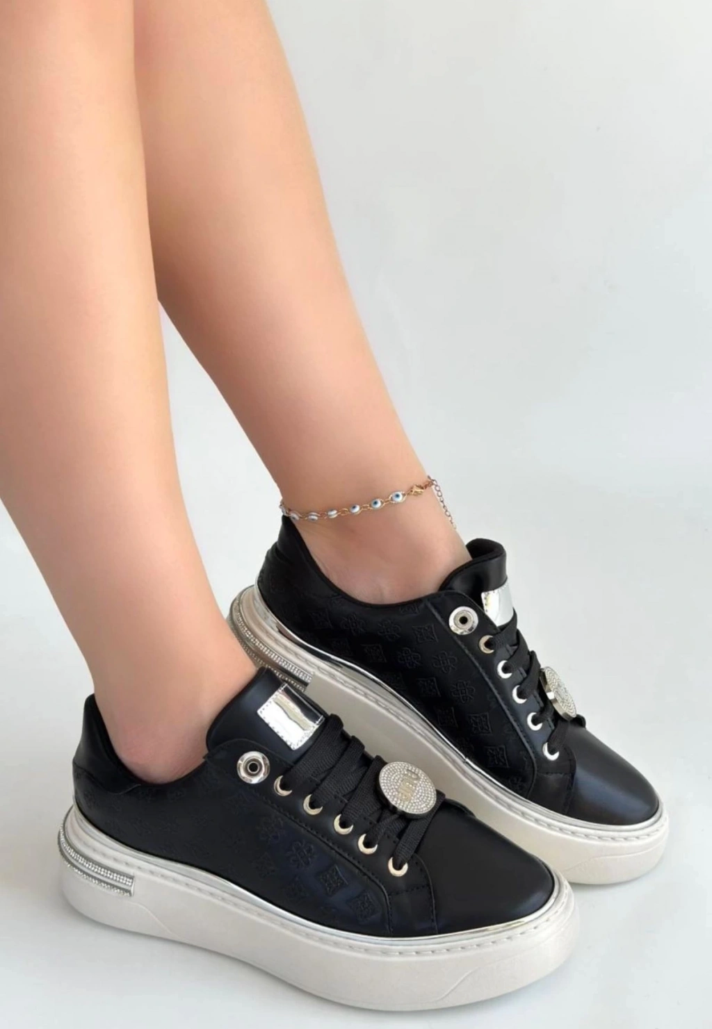 • Jlar Siyah Cilt Bağcıklı Spor Ayakkabı