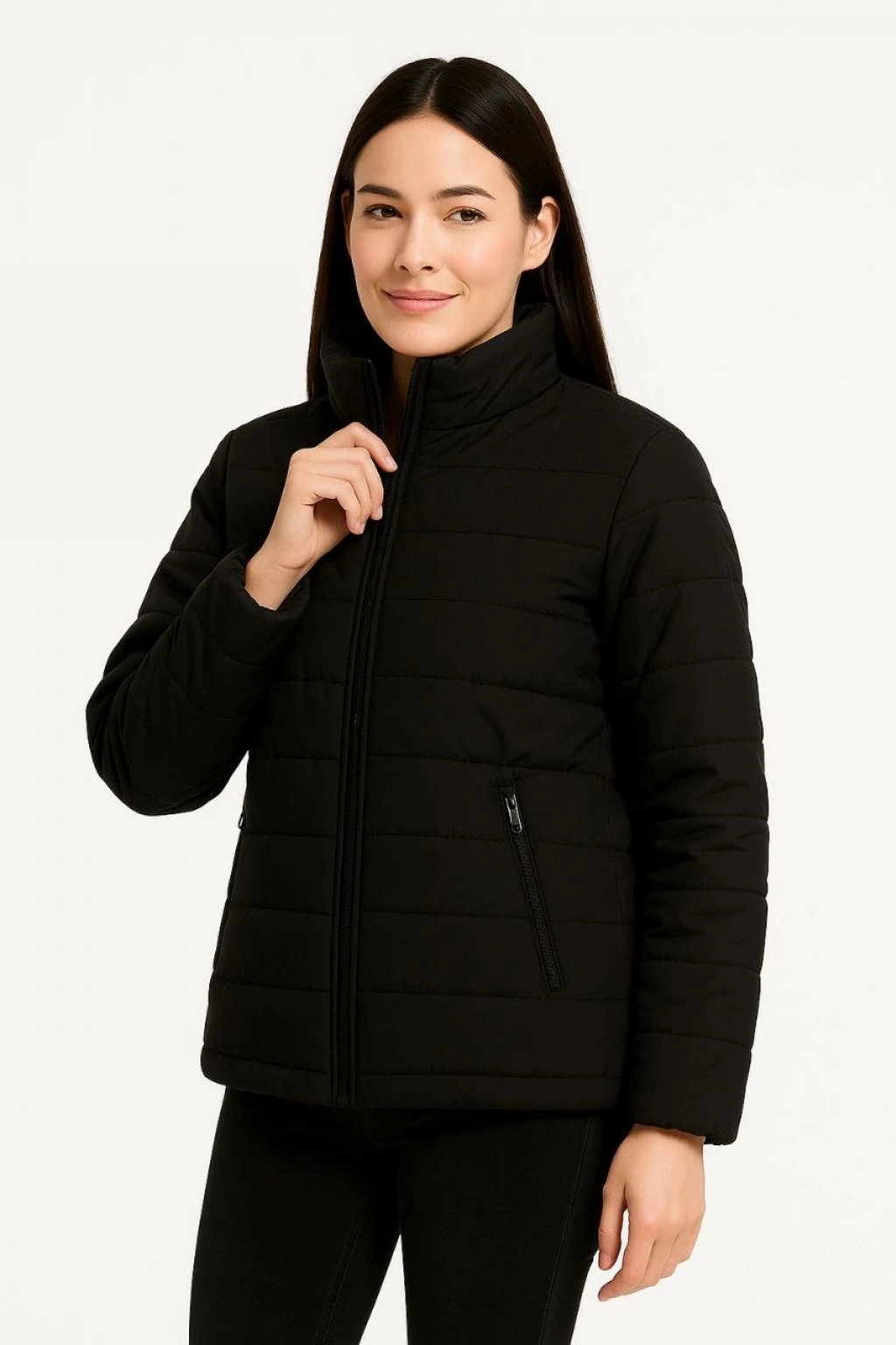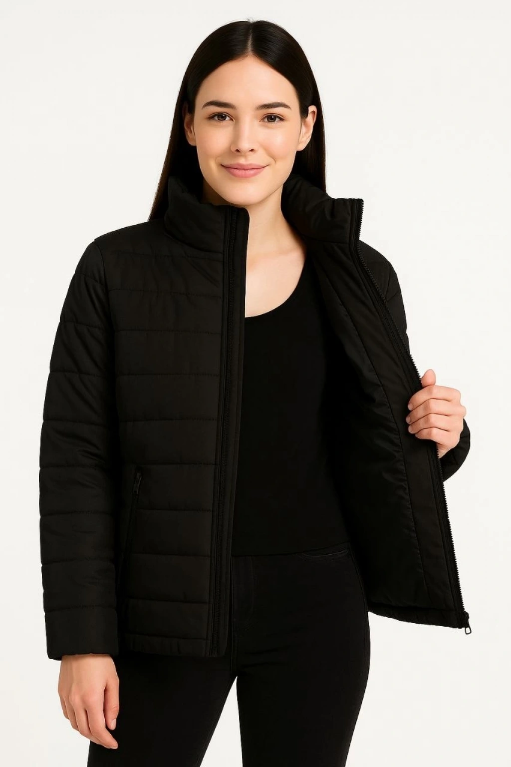 Kadın Bomber Mont Ceket – Su İtici Kumaş, Kapitone Astarlı, Fermuarlı, Kışlık - Siyah