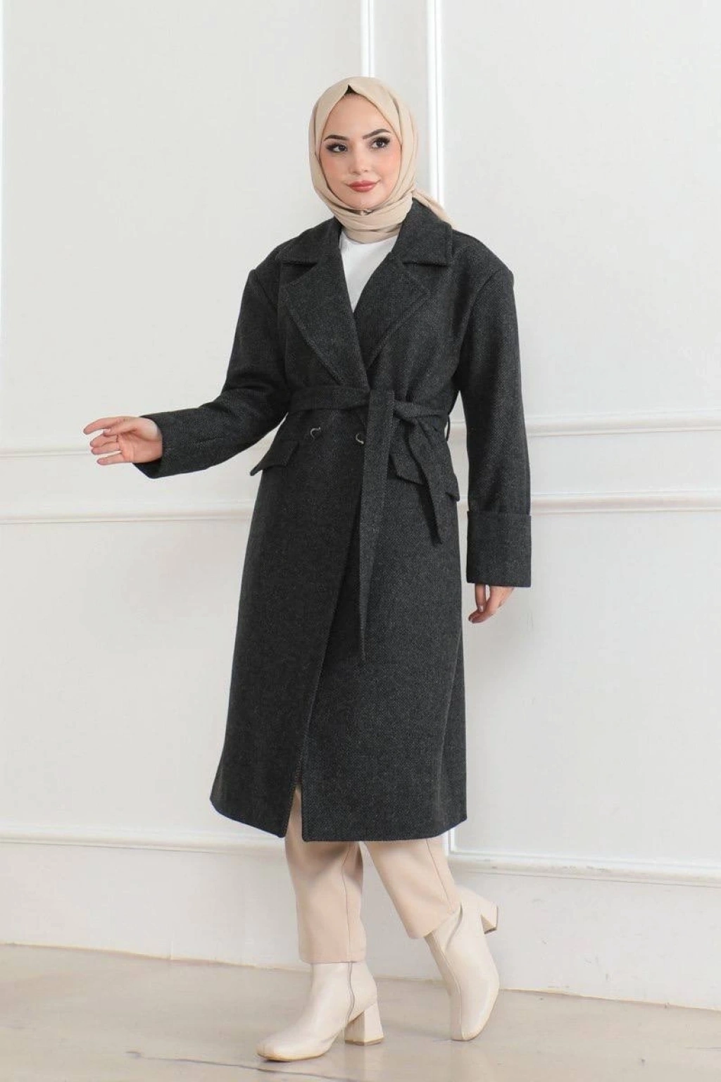 | Ürün açıklaması | Kış aylarında şıklığı ve sıcaklığı bir arada sunan bu uzun boy kaşe kaban, içi astarlı yapısıyla ekstra konfor sağlarken düğmeli tasarımıyla da modern bir görünüm sunar. %95 kaşe ve %5 akrilik kumaş karışımı ile dayanıklı ve sıcak tutan bu kaban, tesettür giyime uygun olarak tasarlanmıştır. Kruvaze yaka ve beldeki ayarlanabilir kuşak detayı ile vücut hatlarını zarifçe öne çıkarırken, öndeki düğme detayları sayesinde klasik bir şıklık katar. Geniş koleksiyon seçenekleriyle hem günlük hem de özel gün kombinlerinizi tamamlayacak bu kaban, kış gardırobunuzun vazgeçilmezi olacak. |