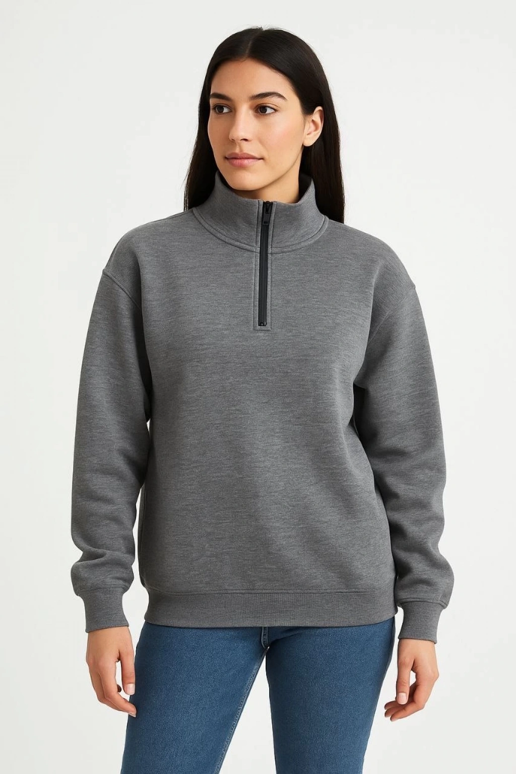 Detay | Dık Yaka , Kol,Etek Ribana , Uzun Kollu , Yarım Fermuarlı |