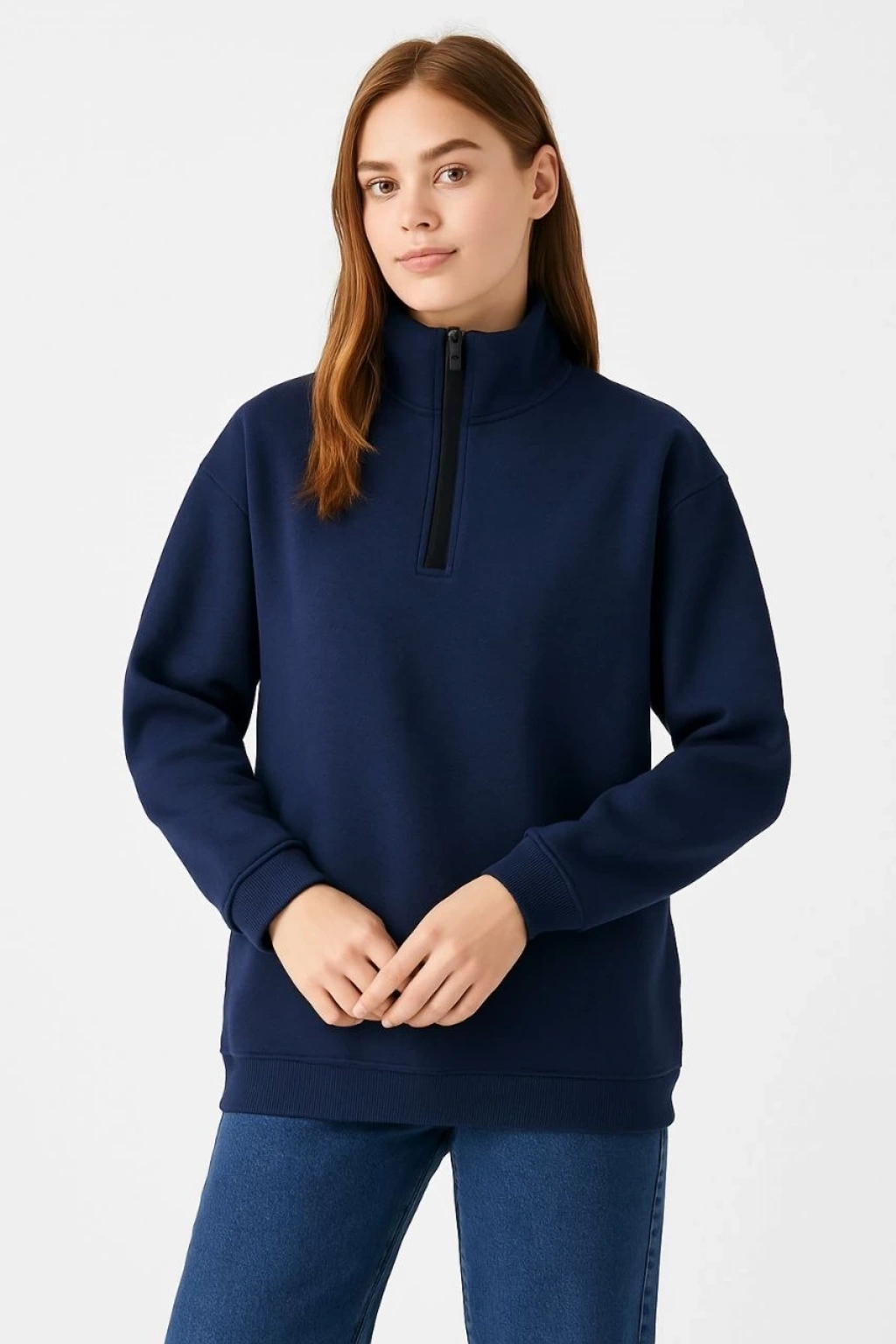 Detay | Dık Yaka , Kol,Etek Ribana , Uzun Kollu , Yarım Fermuarlı |
