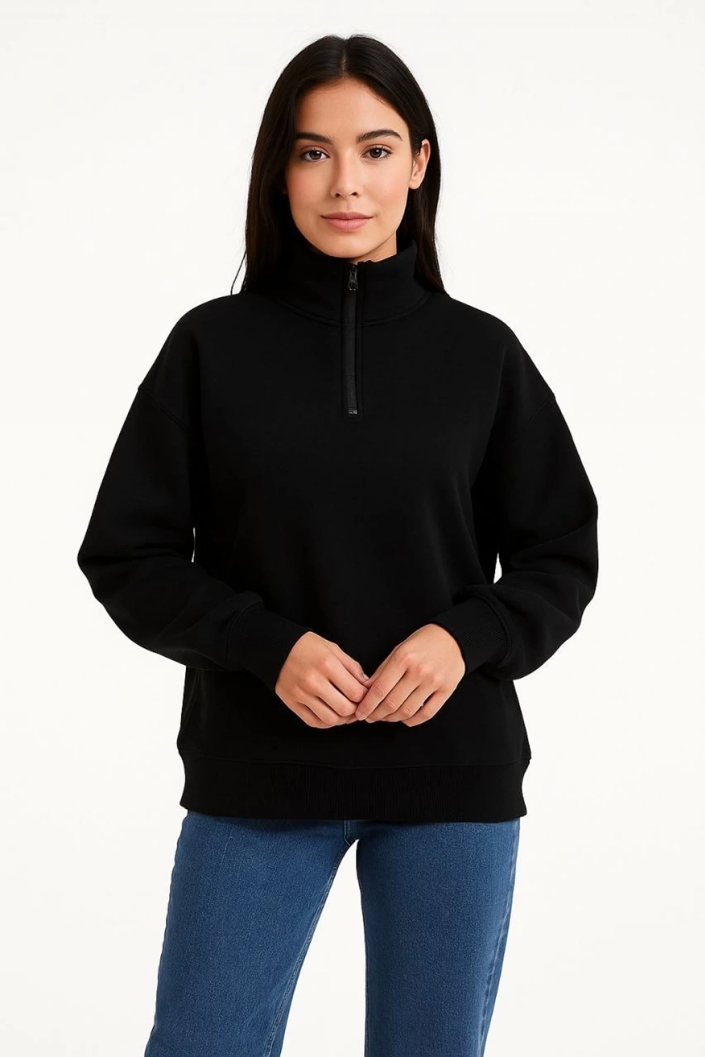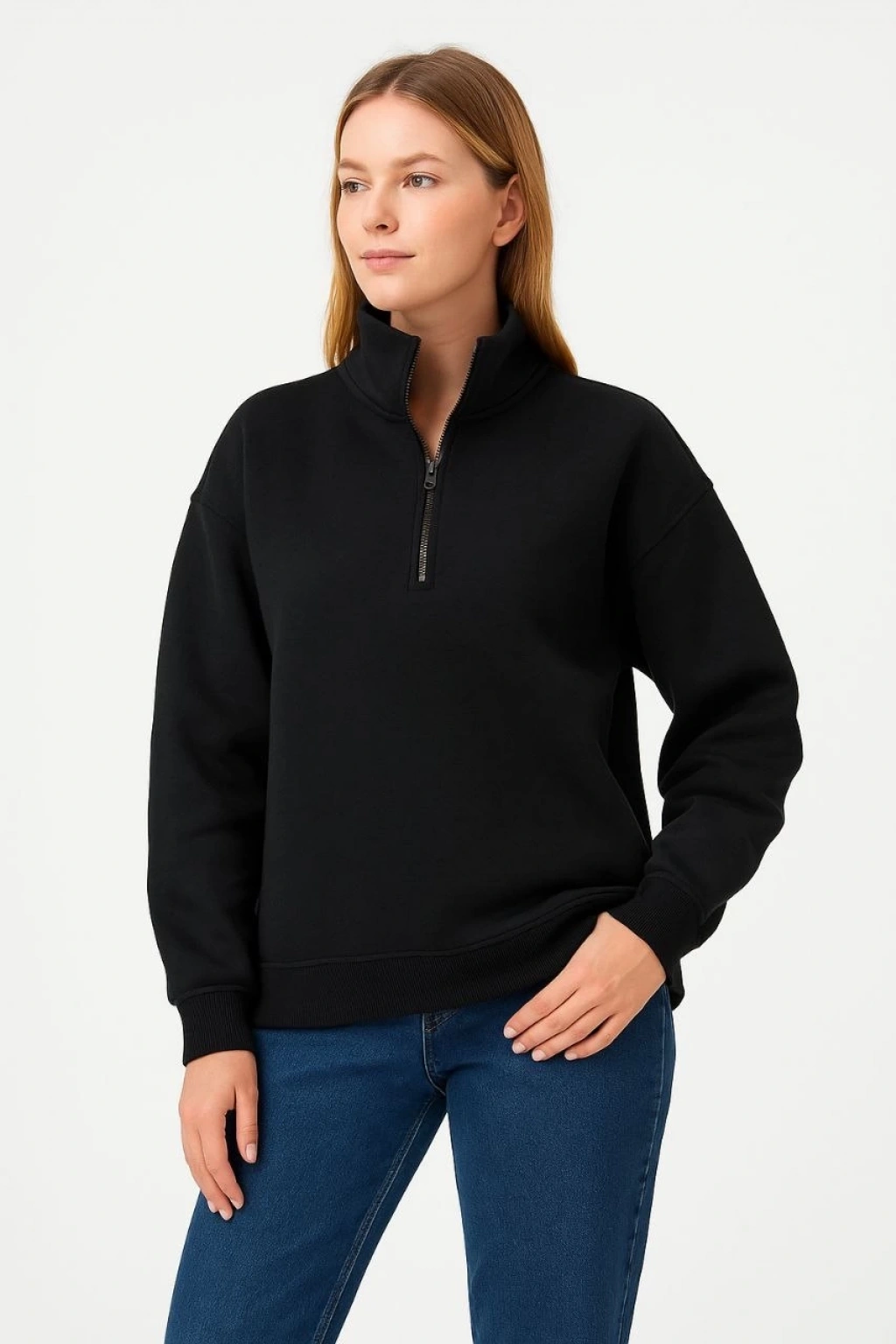 Detay | Dık Yaka , Kol,Etek Ribana , Uzun Kollu , Yarım Fermuarlı |