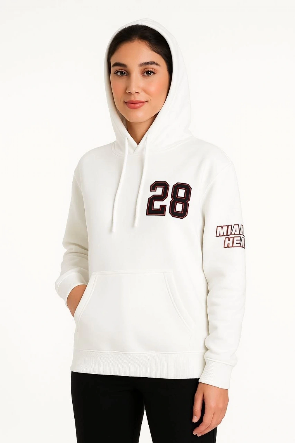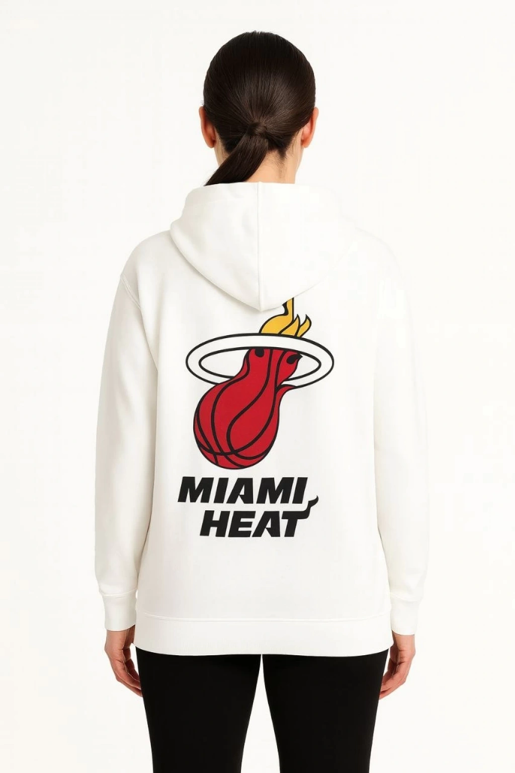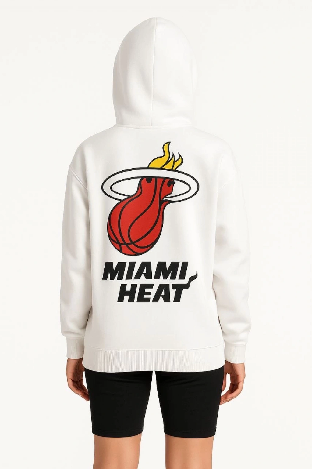 Kadın Üç İplik Kapüşonlu Ön ve Arka Baskılı SweatShirt hoodie - Beyaz