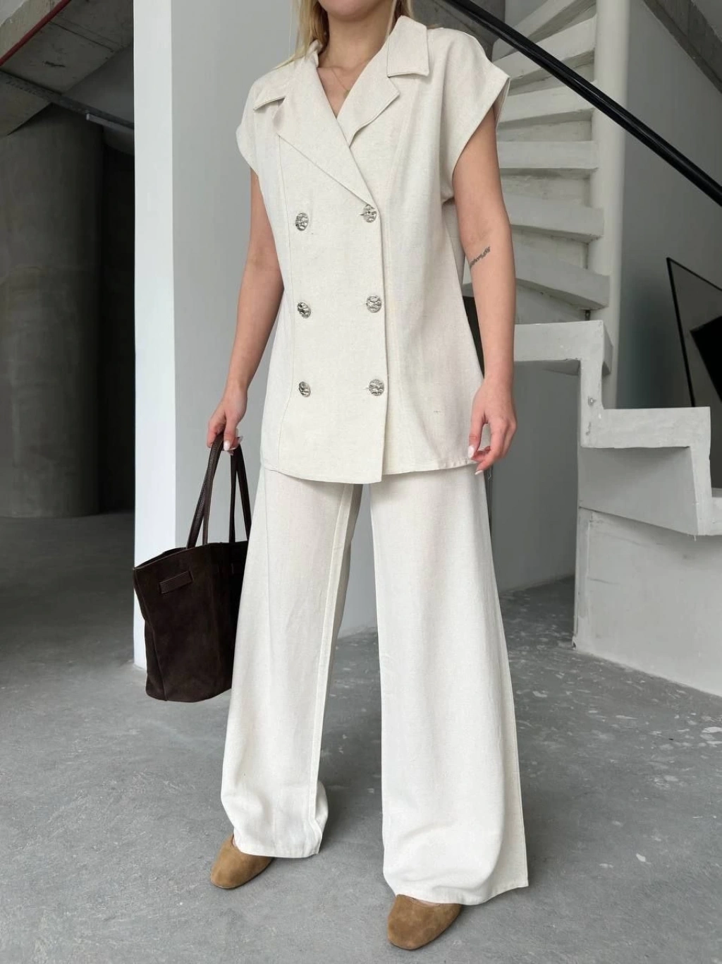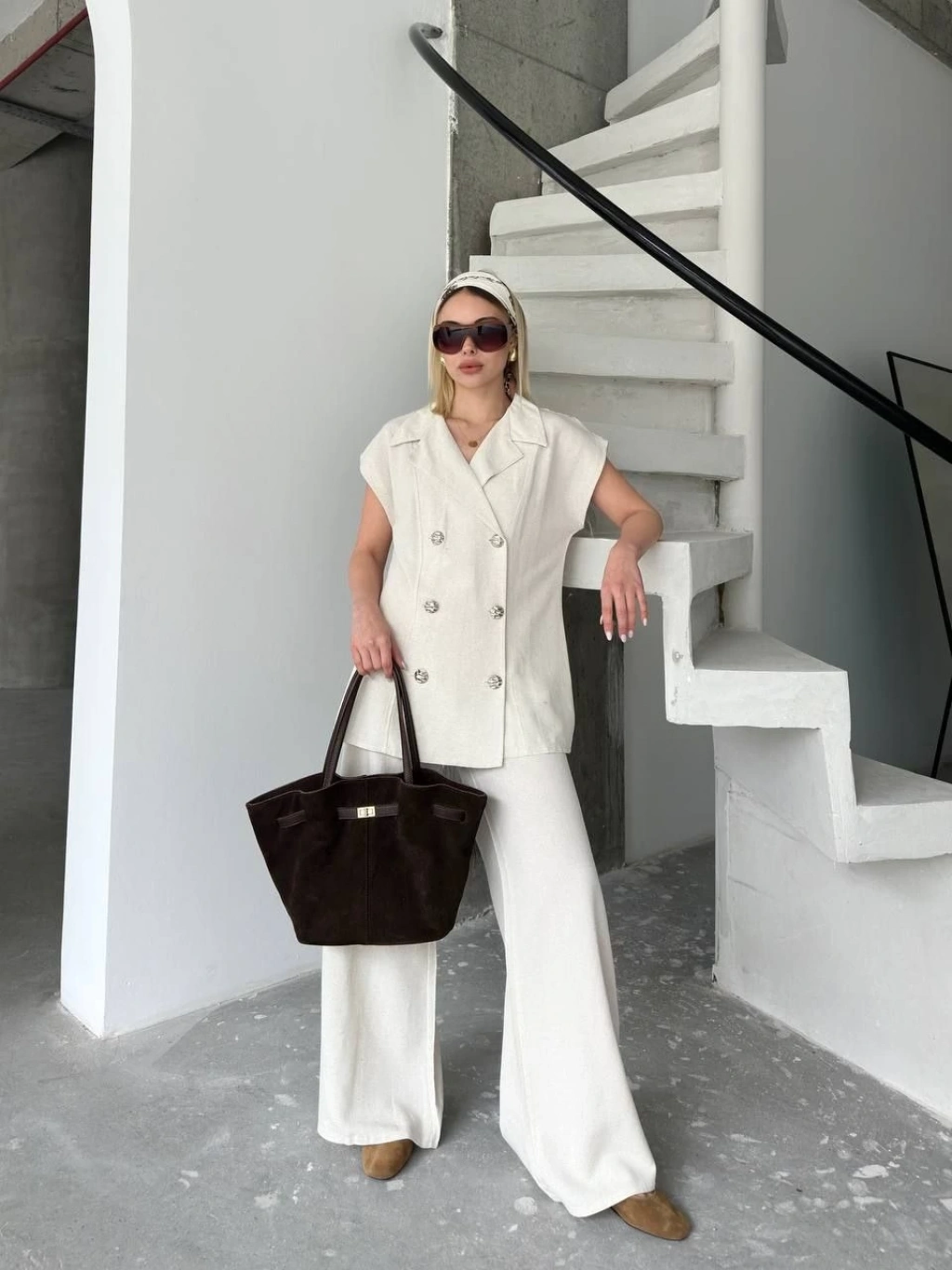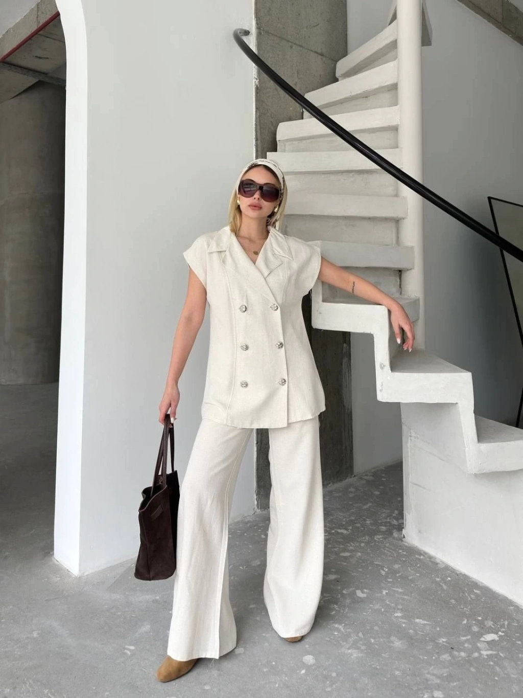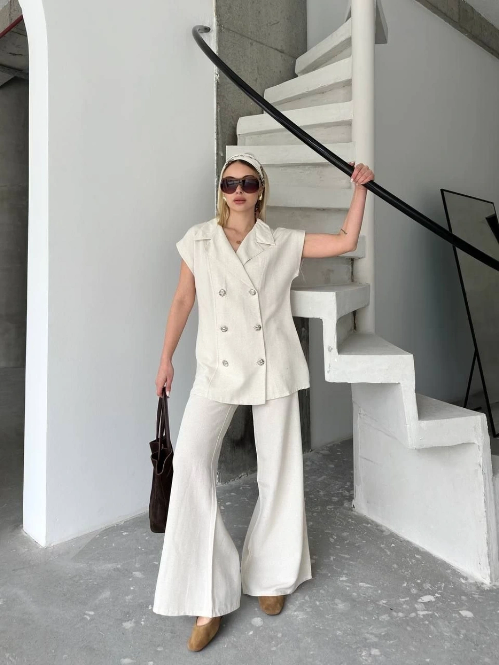 Detay | ilik Düğmeli , İspanyon Bol Paça , Kolsuz , Yakalı |