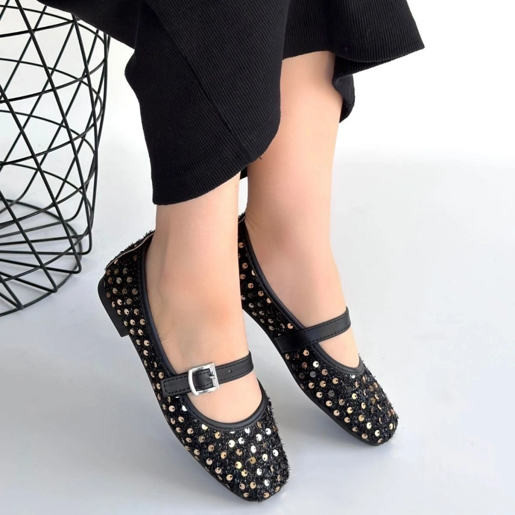 • Moden Siyah Süet Babet Ayakkabı