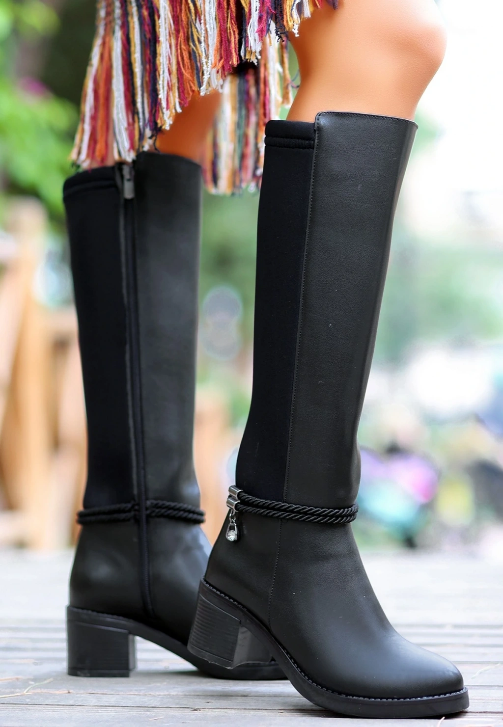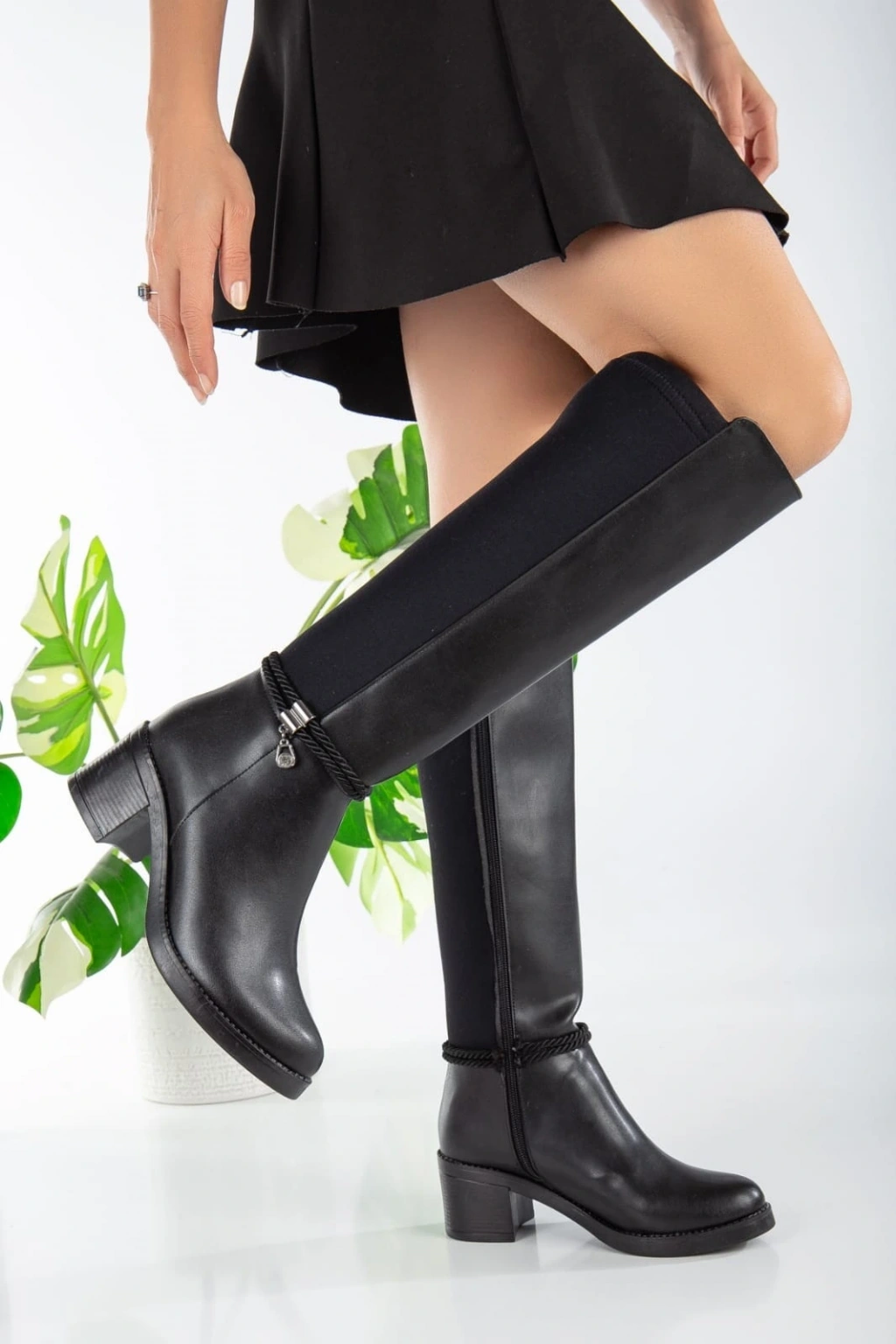 Detay: Topuklu Yandan Fermuarlı Arka Kısmı Streç Diz Altı Çizme