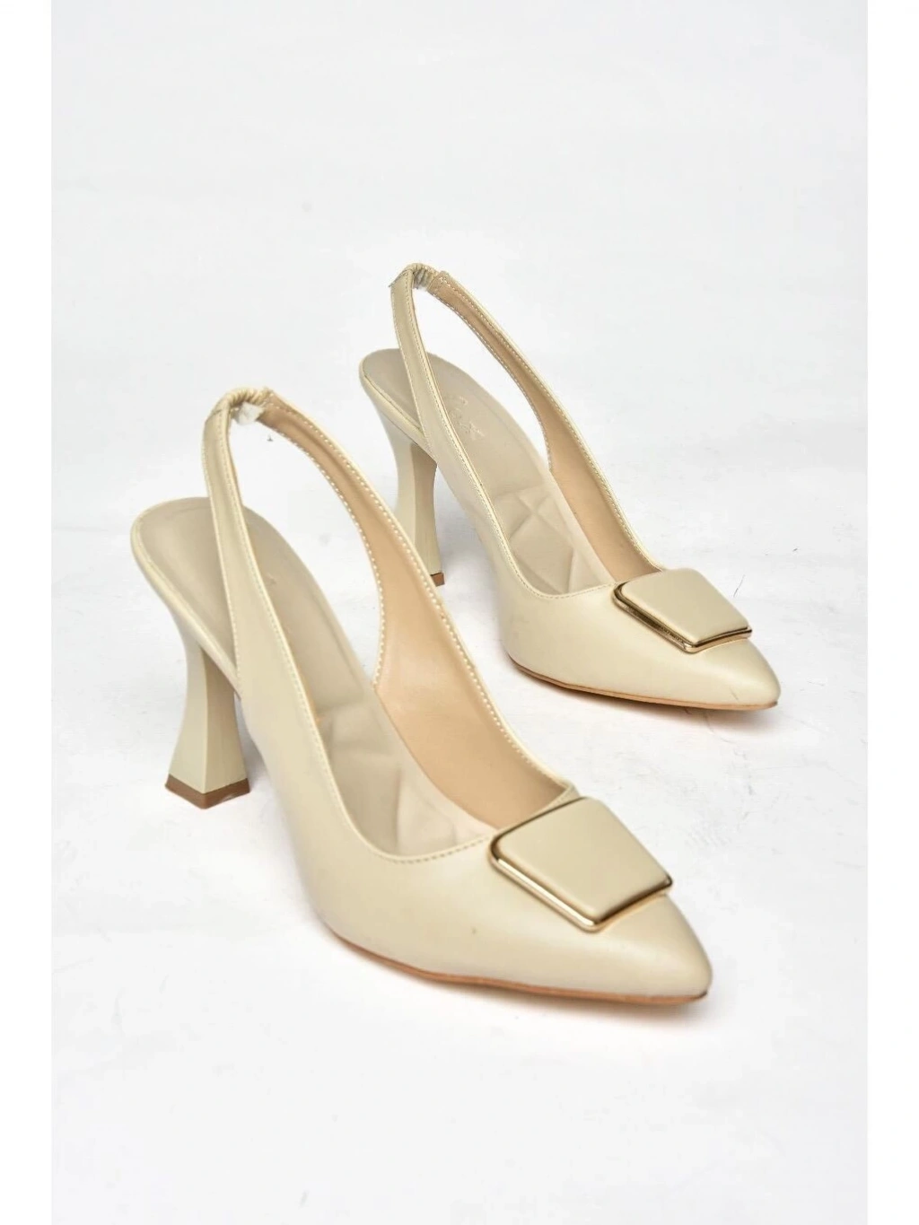 • Pıert Bej Cilt Topuklu Ayakkabı