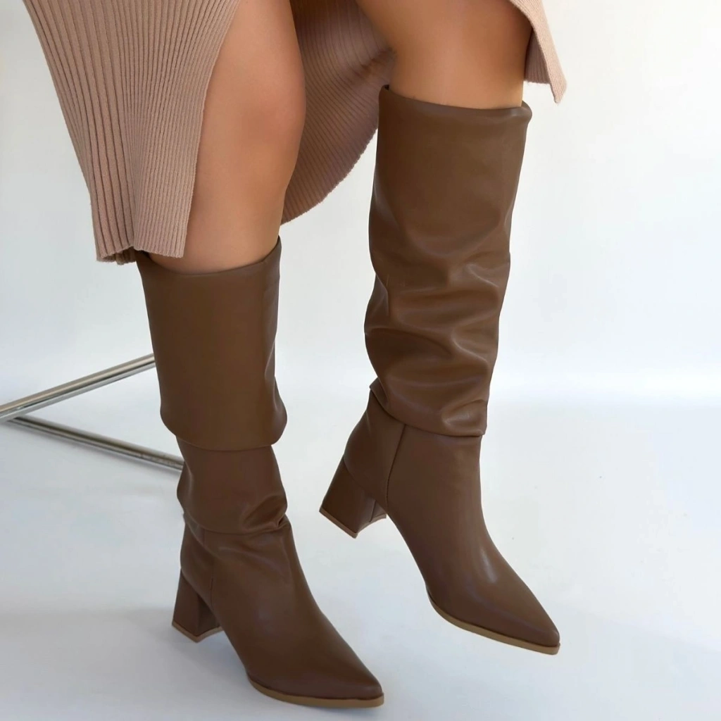 Detay: Topuklu Diz Altı Körüklü Çizme