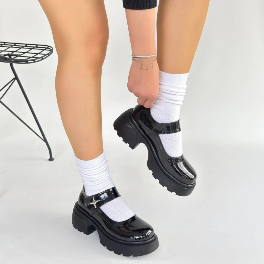 • Siyat Siyah Rugan Dolgu Topuk Oxford Ayakkabı
