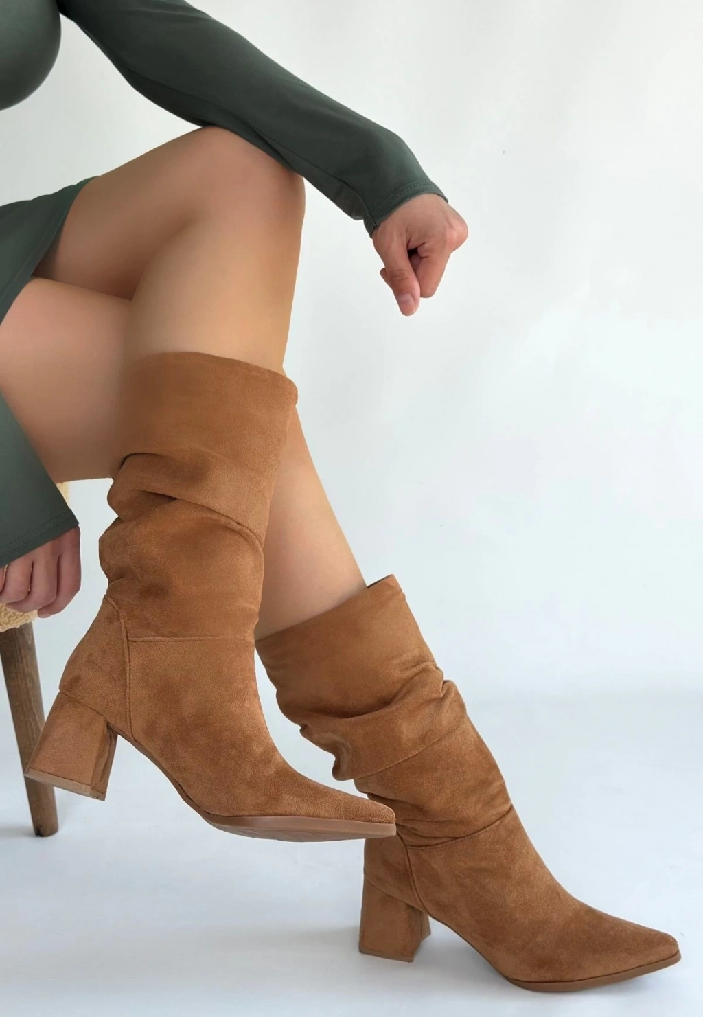 Detay: Topuklu Diz Altı Körüklü Çizme