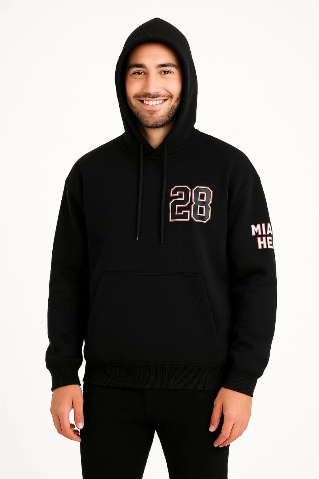 Erkek Kapşonlu Sweatshirt – Üç İplik Şardonlu Kumaş, Oversize Fit, Ön & Arka Baskılı, Kanguru Cepli, Kışlık Rahat Hoodie - Siyah