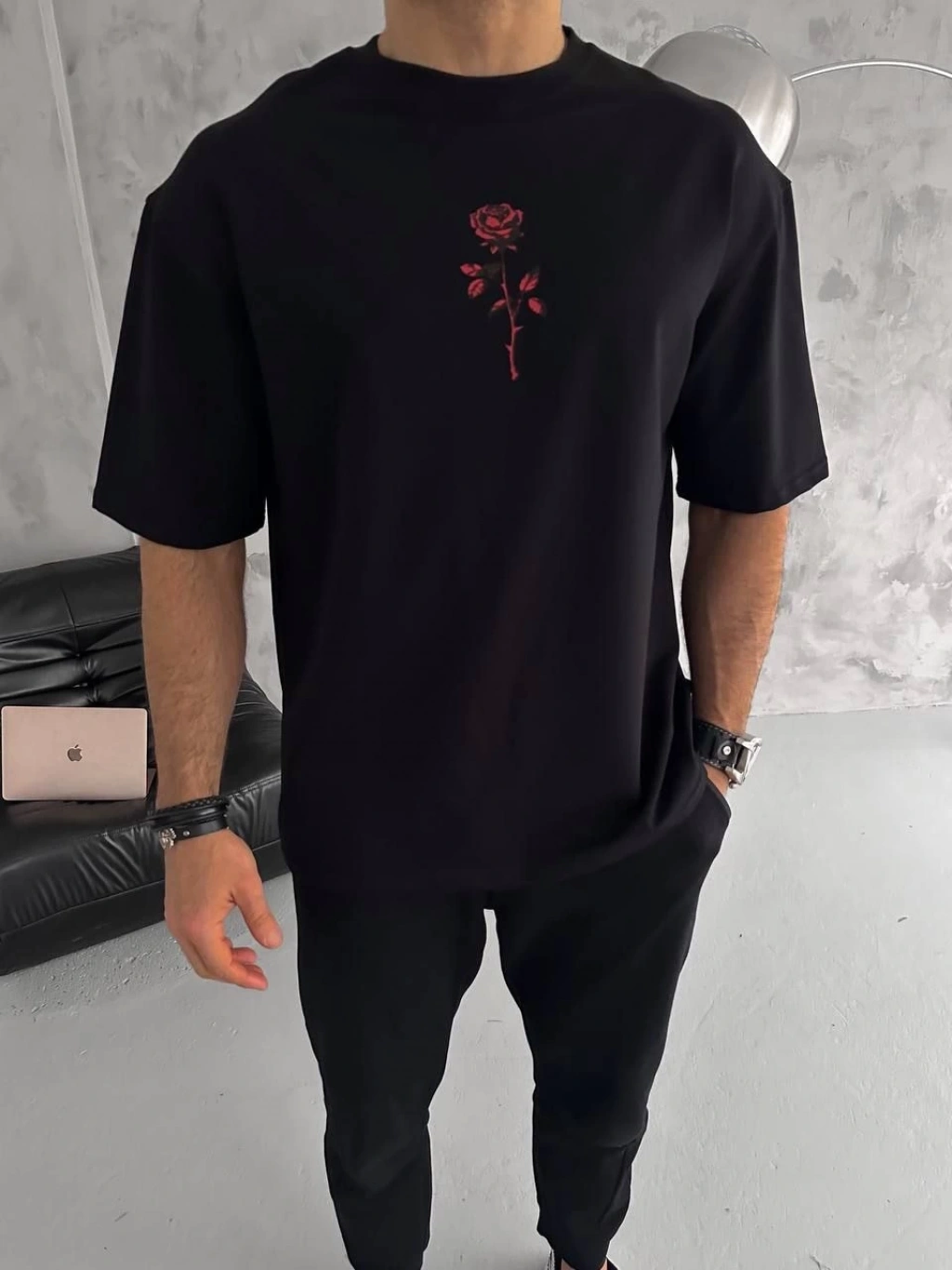 Eşsiz Baskı Tasarımlı Şık Büyük Beden Erkek Tişörtü - Rahat Polyester, Makinede Yıkanabilir, Yuvarlak Yaka - Her Mevsim İçin Mükemmel - Siyah